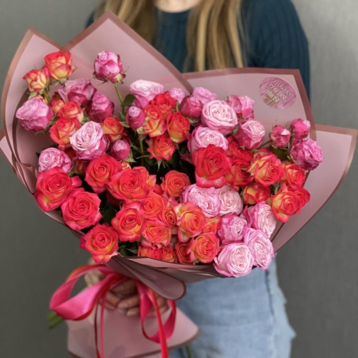 В этом букете вы найдете кустовые розы различных сортов, каждая из которых обладает своей уникальной красотой и очарованием. Розы могут быть разных цветов. Мы гарантируем, что все цветы в букете свежие и качественные. Доставка по Тбилиси абсолютно бесплатная.