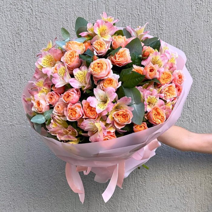 Насыщенный красками и живой эмоцией, наш микс букет из роз и альстромерии – это настоящий калейдоскоп красоты. Этот удивительный букет сочетает в себе изысканность роз и жизнерадостность альстромерий, создавая удивительную гармонию и яркое впечатление.