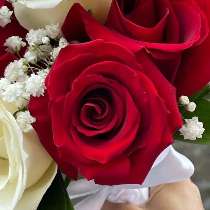 Букет невесты с красными и белыми розами