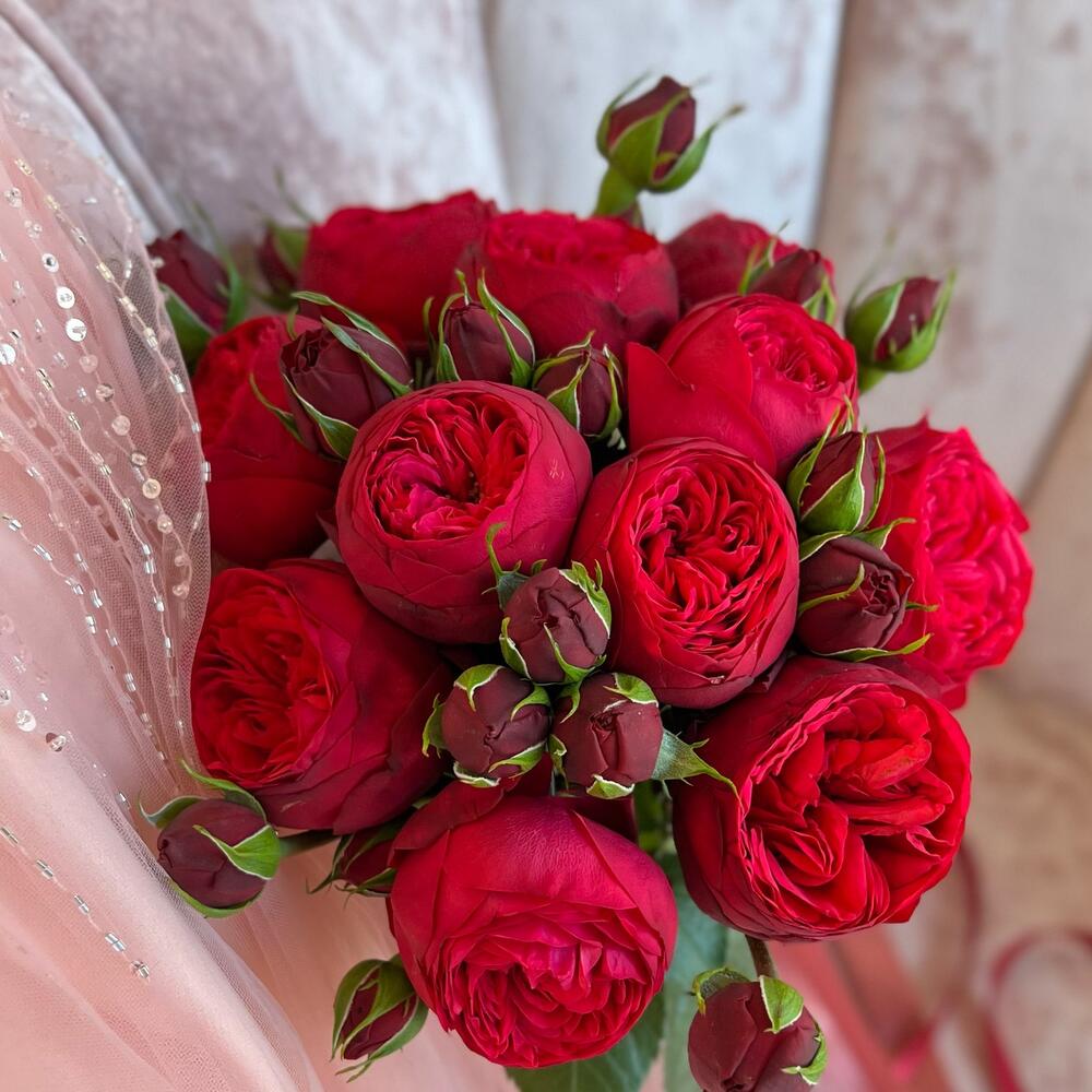 Пионовидная роза – 11 шт.Атласная лента – 2 шт.