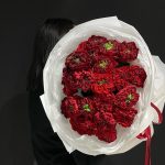 Букет из пионовидных роз – это прекрасная композиция из роз, которые имеют форму и текстуру, напоминающую пионы. Эти розы обладают большими, пышными цветками с множеством лепестков, создавая эффект роскоши и изысканности. Они могут быть разных оттенков, от нежных пастельных до ярких и насыщенных цветов. Букет из пионовидных роз выглядит очень элегантно и романтично, идеально подходит для особых случаев и подарков.