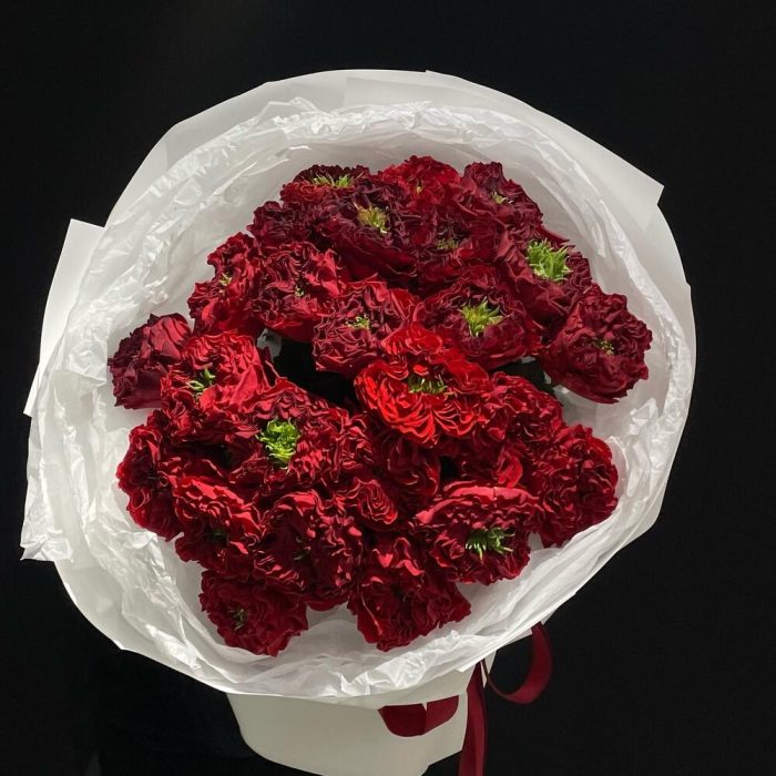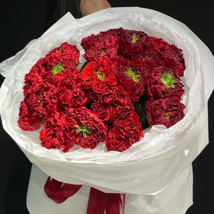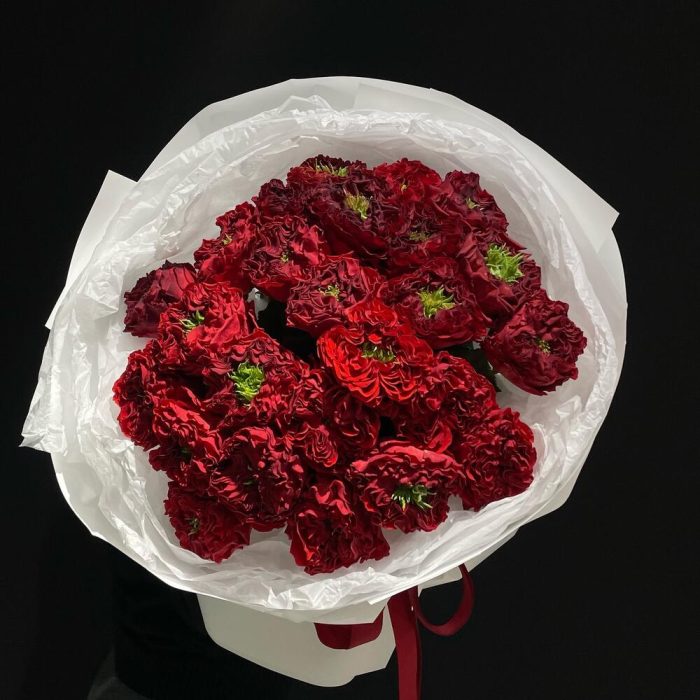 Букет из пионовидных роз – это прекрасная композиция из роз, которые имеют форму и текстуру, напоминающую пионы. Эти розы обладают большими, пышными цветками с множеством лепестков, создавая эффект роскоши и изысканности. Они могут быть разных оттенков, от нежных пастельных до ярких и насыщенных цветов. Букет из пионовидных роз выглядит очень элегантно и романтично, идеально подходит для особых случаев и подарков.