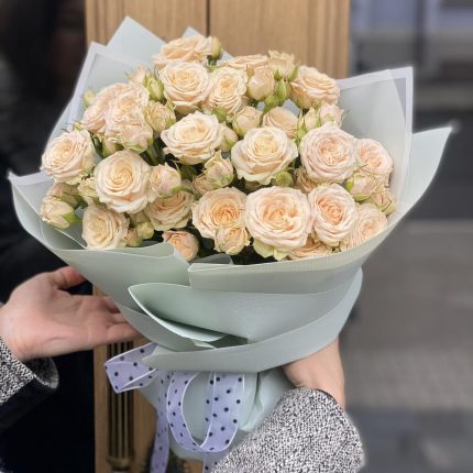 Оформление лента атласная – 1 шт. кустовая пионовидная роза misty bubbles – 35 шт.