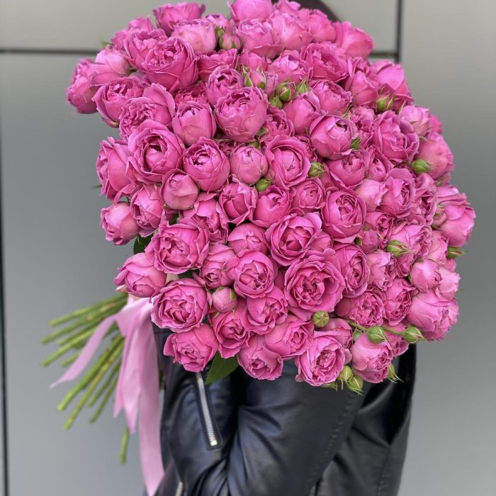 Оформление лента атласная – 1 шт. кустовая пионовидная роза misty bubbles – 35 шт.