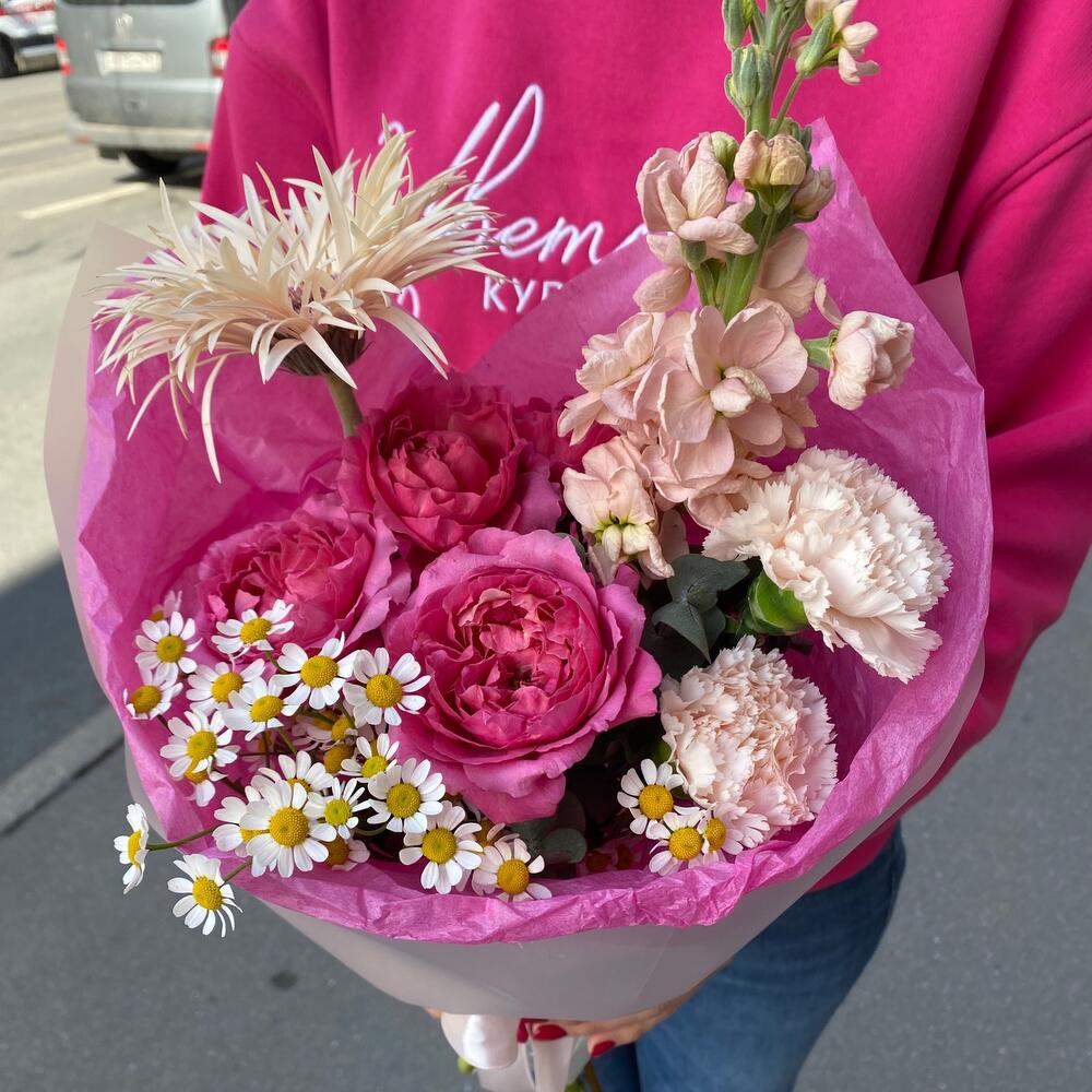 Категорий: Гвоздики, Герберы, Кустовые розы, Пионовидные розы, Розы