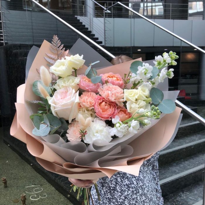 Букет из пионовидной розы и эустомы