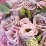 Букет с розами и лизиантусом “Клубника с шампанским”