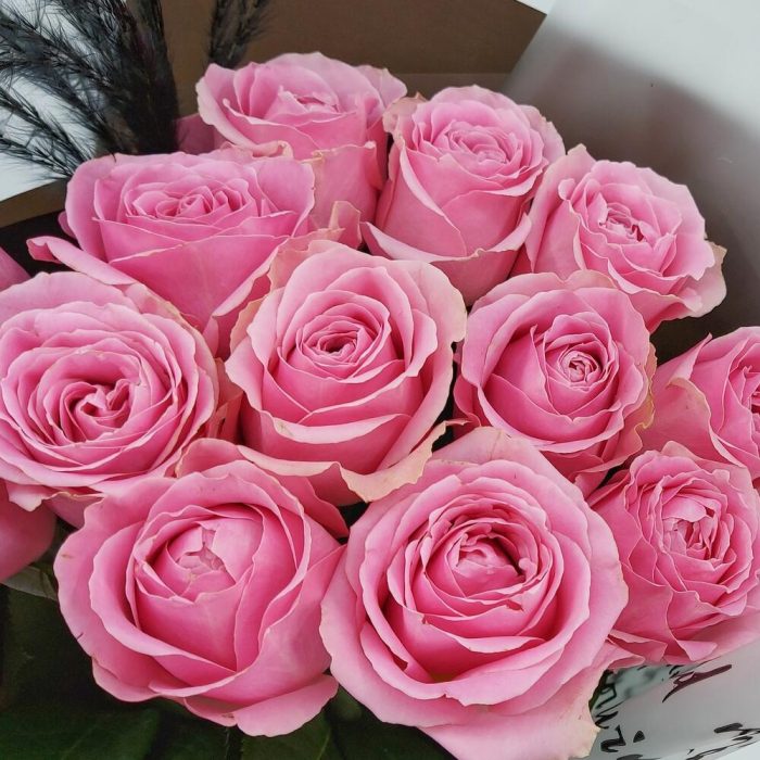 Стильный букет из эквадорских роз красивого розового оттенка с пышным, ажурным раскрытием бутонов.