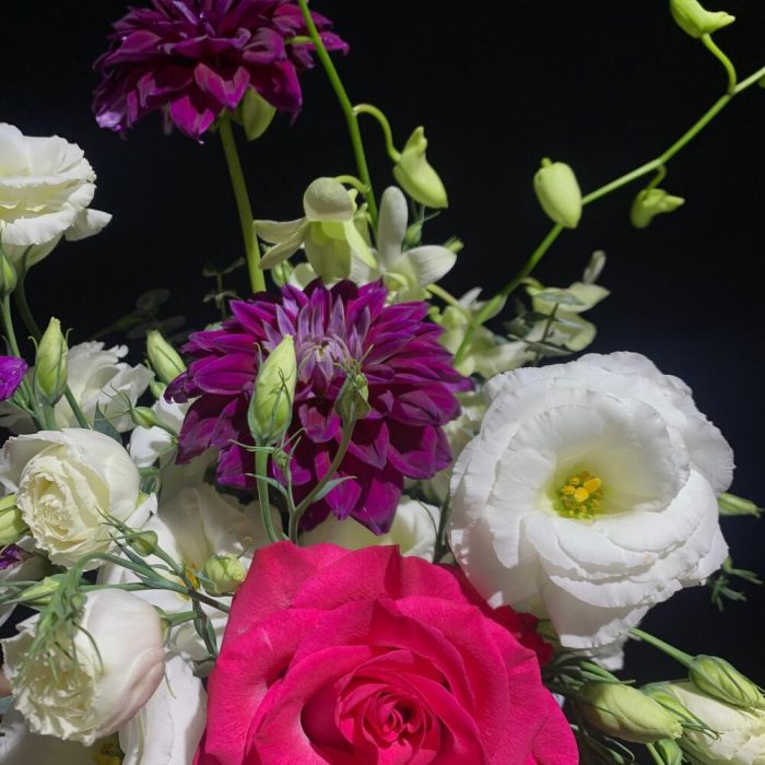 Альстромерии, Гвоздики, Кустовые розы, Лизиантусы, Розы, Хризантемы