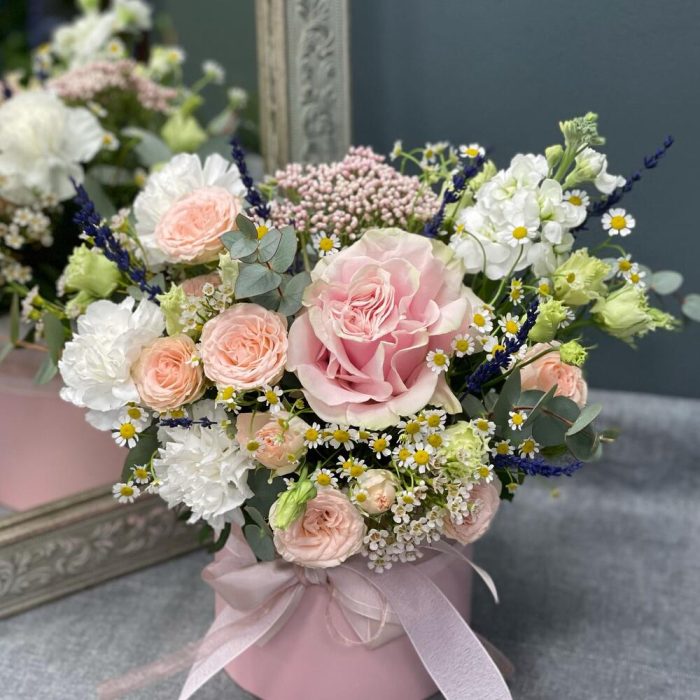 “В твоих глазах”: нежная шляпная коробка с французскими розами
