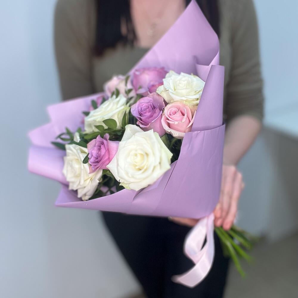 Гвоздики, Кустовые розы, Лизиантусы, Пионовидные розы, Розы