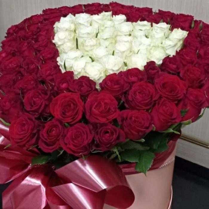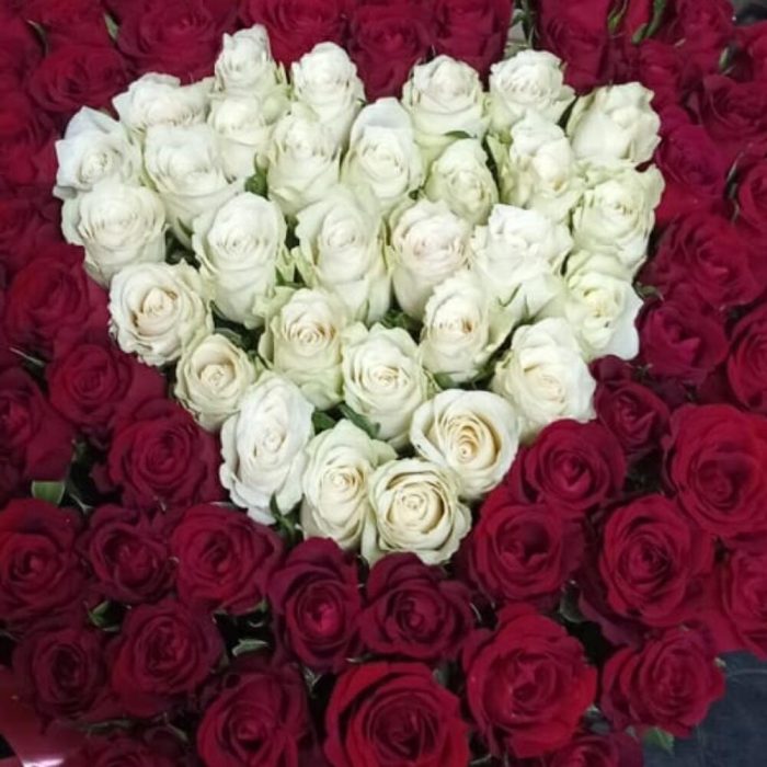 Роза красная – 71 шт. Роза белая – 30 шт. "сердечко для любимой " – 101 шт.