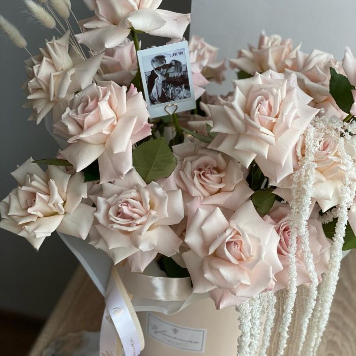 “В твоих глазах”: нежная шляпная коробка с французскими розами