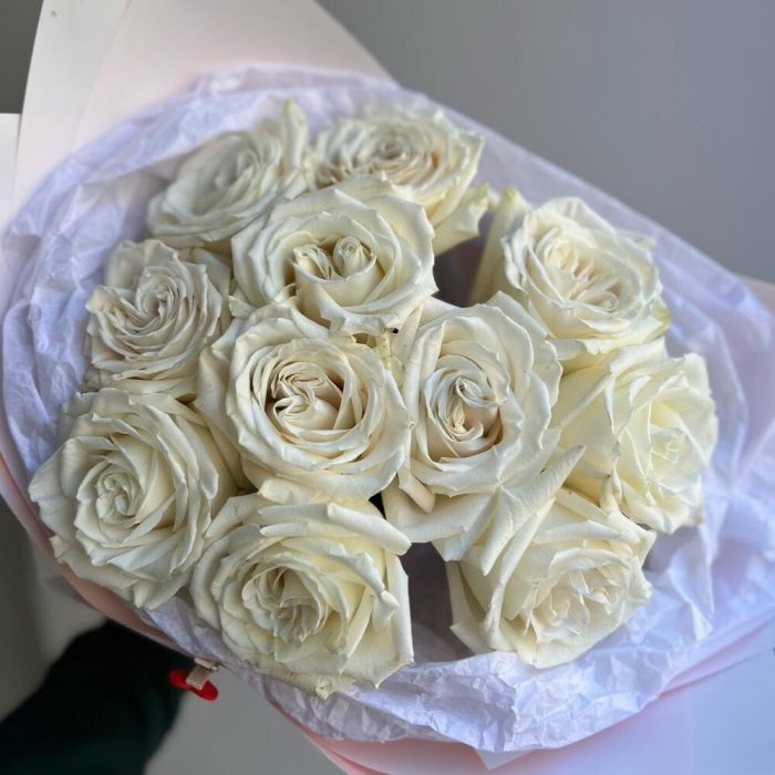 Эстетичный моно букет из 11 белых роз