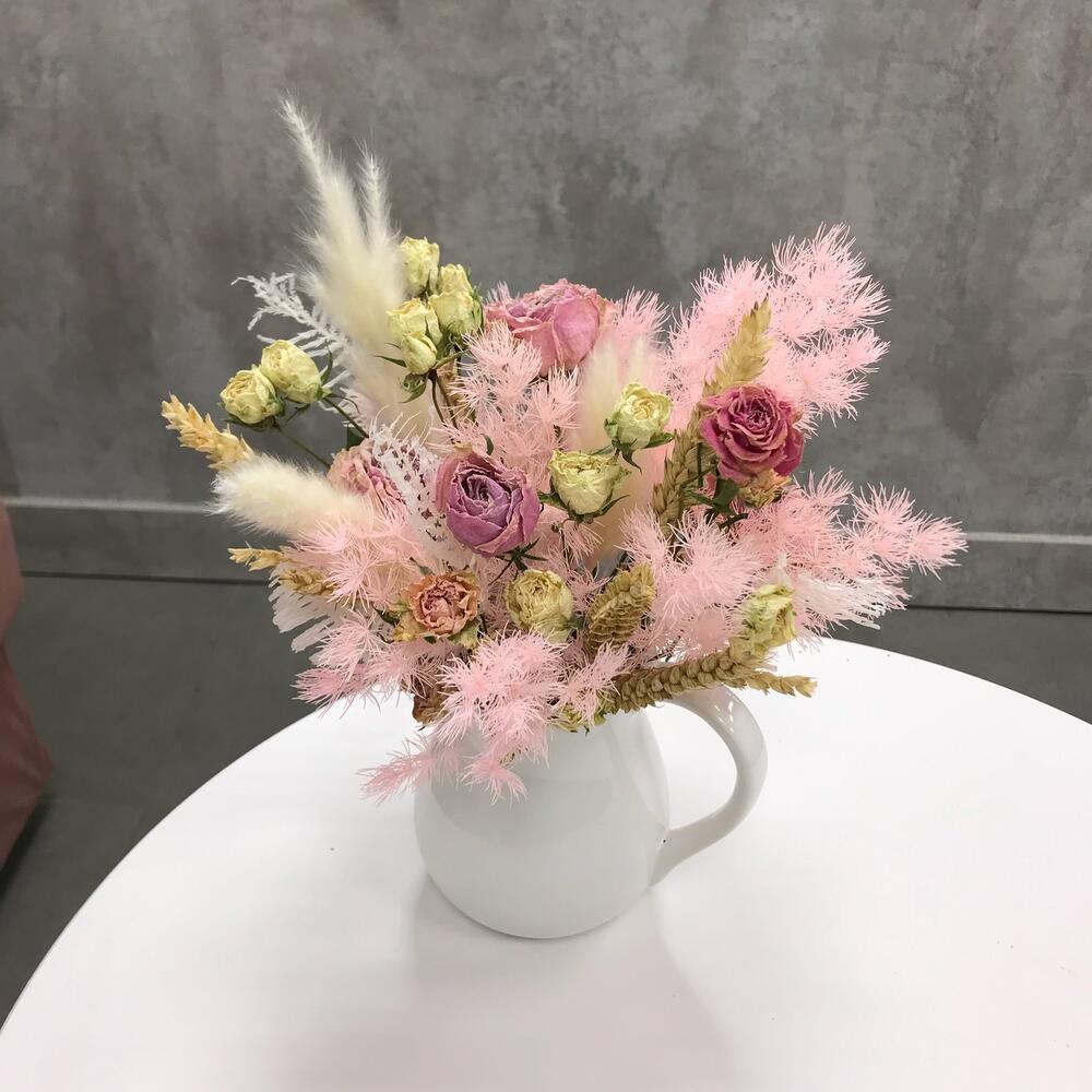 Композиция из сухоцветов и засушенных цветов в керамическом кувшине
