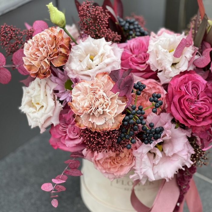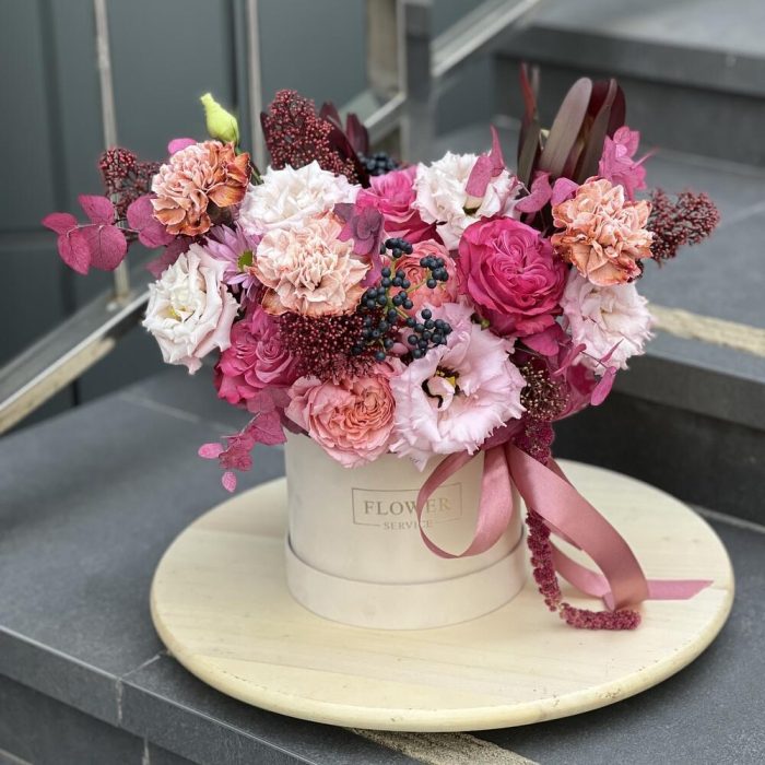 Кустовые розы, Лизиантусы, Розы, Сухоцвет