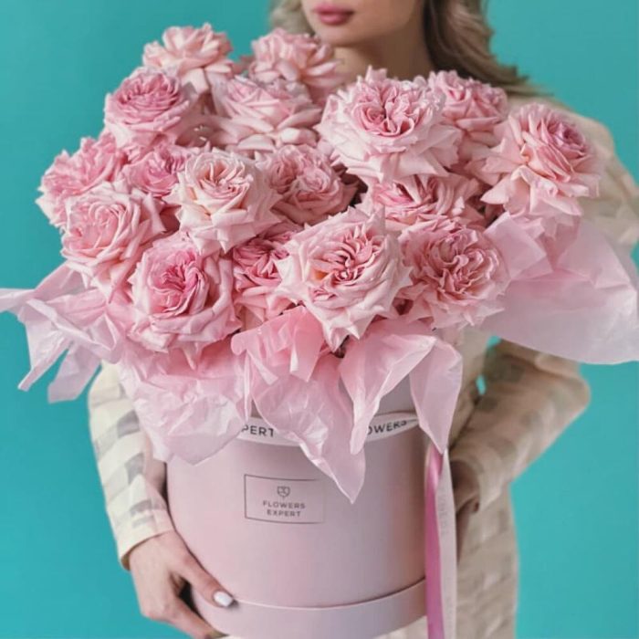 Коробка из 25 пионовидных роз “PINK OHARA”