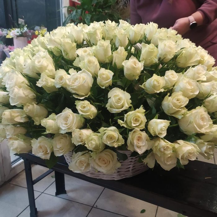 Корзина белых роз