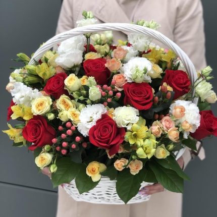 Метки: Белые розы, На свадьбу, от 5000 руб, Роза 50 см, Розовые розы, Розы в корзине, цветы в корзине