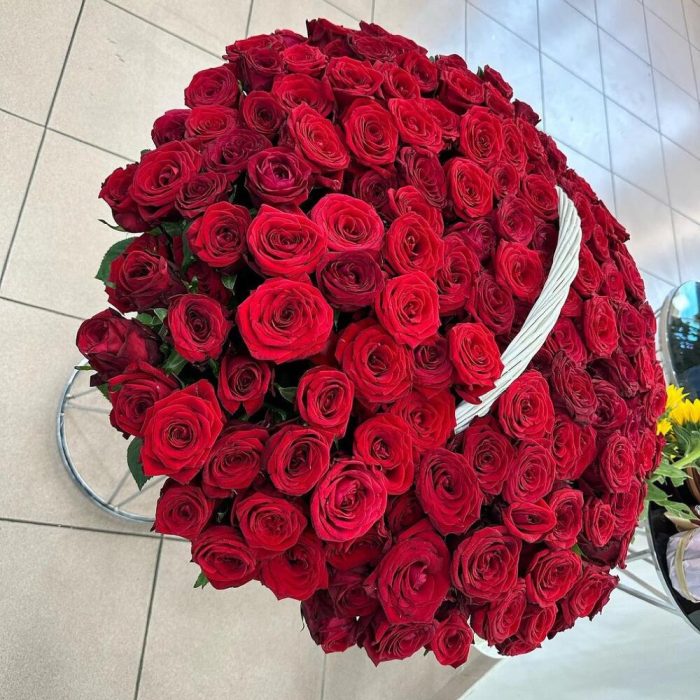 151 красная роза в корзине
