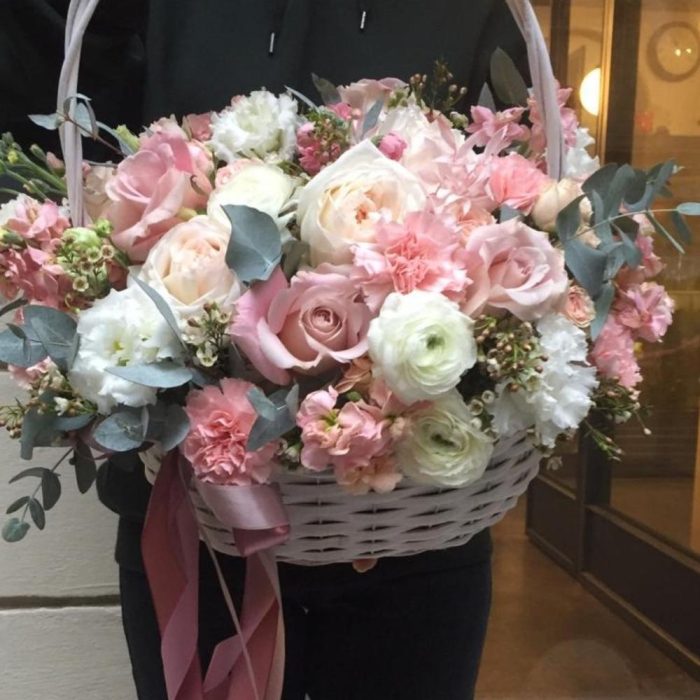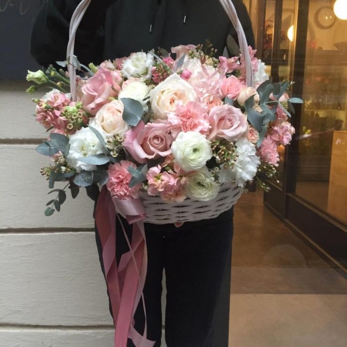 Метки: от 5000 руб, цветы в корзине