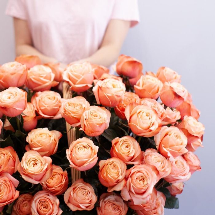 Метки: 101 роза, от 5000 руб, цветы в корзине