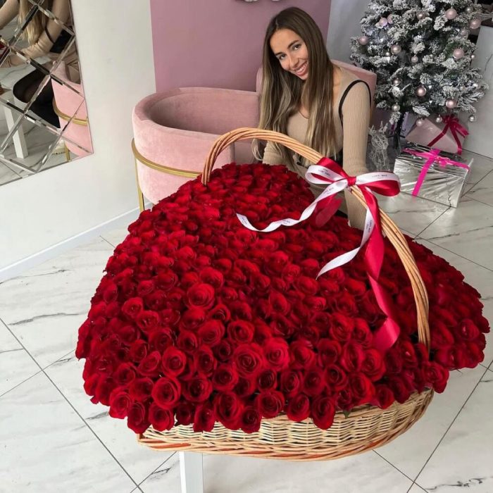 Корзина плетеная – 1 шт.Роза – 251 шт.