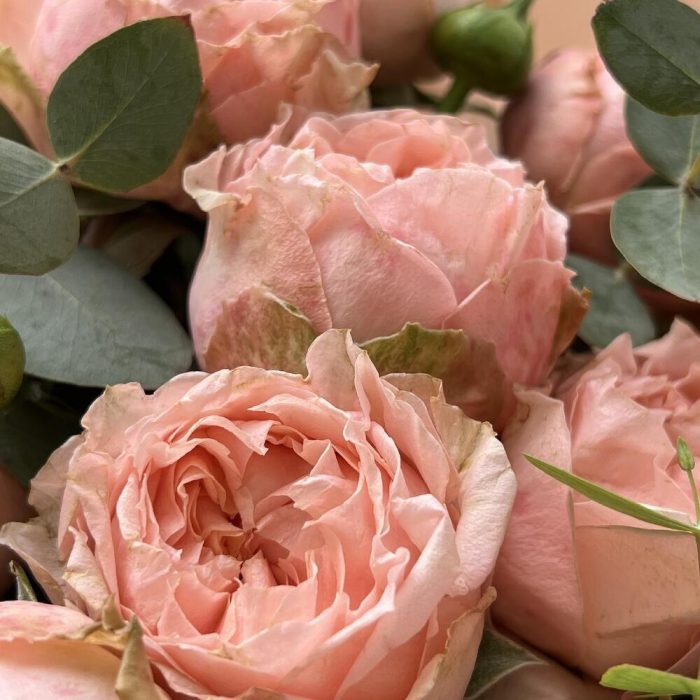 Гвоздики, Кустовые розы, Пионовидные розы, Розы