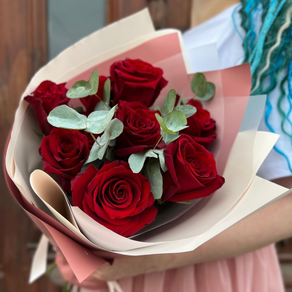 mono bouquet 56 из 11 роз сорта Mondial с эвкалиптом