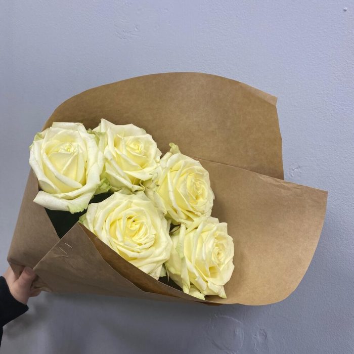 Моно букет из 5 белых роз