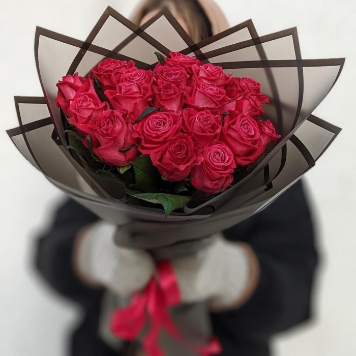 Роза малиновая – 19 шт. Упаковка дизайнерская – 1 шт.