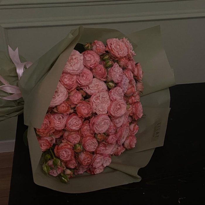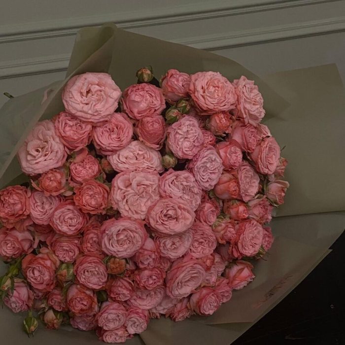 Пионовидная кустовая роза – 25 шт. Дизайнерская упаковка – 3 шт. Открыточка с вашими пожеланиями – 1 шт. доставка – 1 шт.