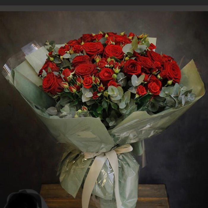 Роза Эквадор – 15 шт. Роза кустовая – 9 шт.