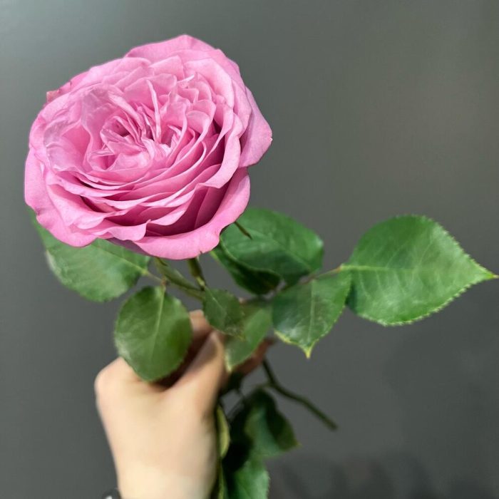 Пышная пионовидная роза отличается объемным бутоном, который как будто состоит из нескольких сотен лепестковПри раскрытии лепестки выкладываются как бы в три серединки. Цветок имеет выразительный лавандовый цвет с вкраплениями фиолетовых и сиреневых оттенков.
