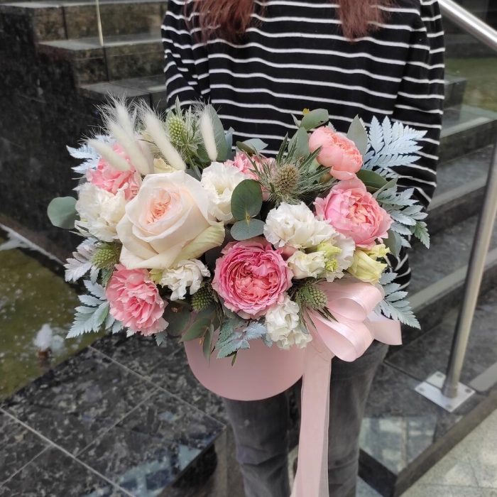 “В твоих глазах”: нежная шляпная коробка с французскими розами