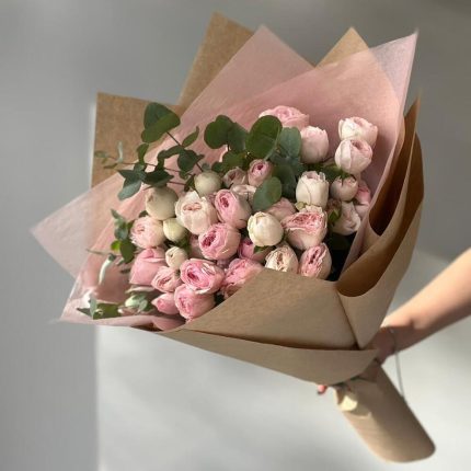 Букет пионовидных кустовых роз сорта Mansfield Park