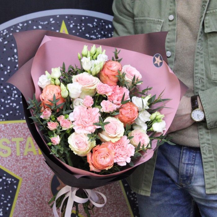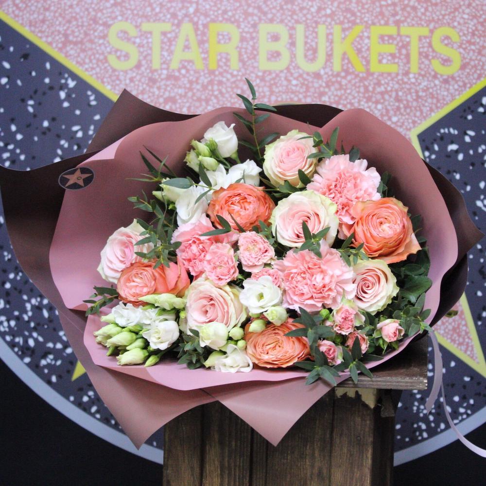 Категорий: Гвоздики, Кустовые розы, Лизиантусы, Пионовидные розы, Розы