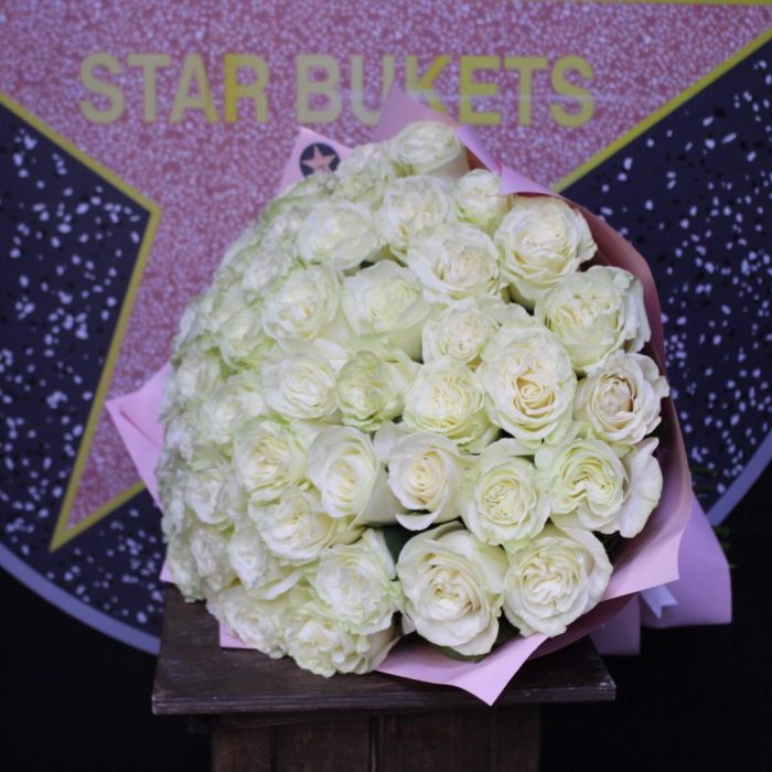 Роза Мондиаль – 51 шт.Пленка дизайнерская – 3 шт.Лента атласная – 2 шт.