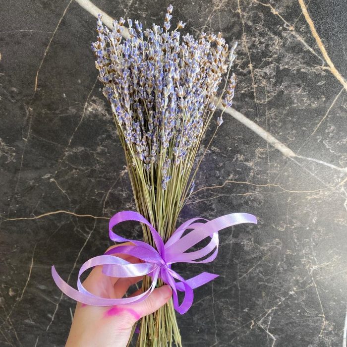 «Лавандовое созвездие» Букет из розы, гвоздики, статица и хлопка