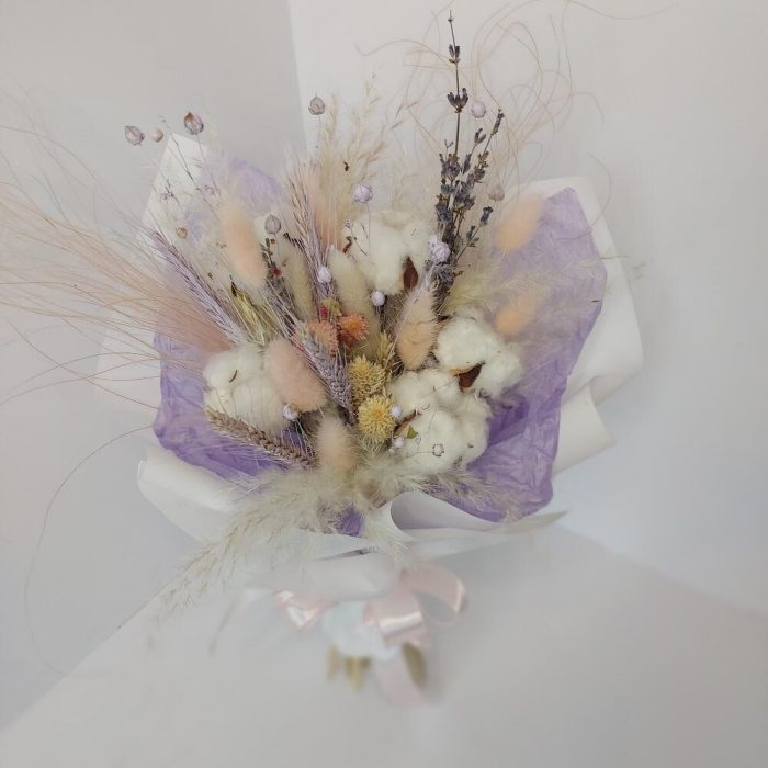 Хлопок – 4 шт.Лагурус – 9 шт.Ковыль – 2 шт.кортадерия – 4 шт.прочие сухоцветы – 15 шт.
