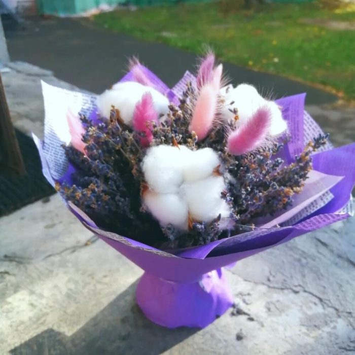 Букет из сухоцветов Лаванда с хлопком