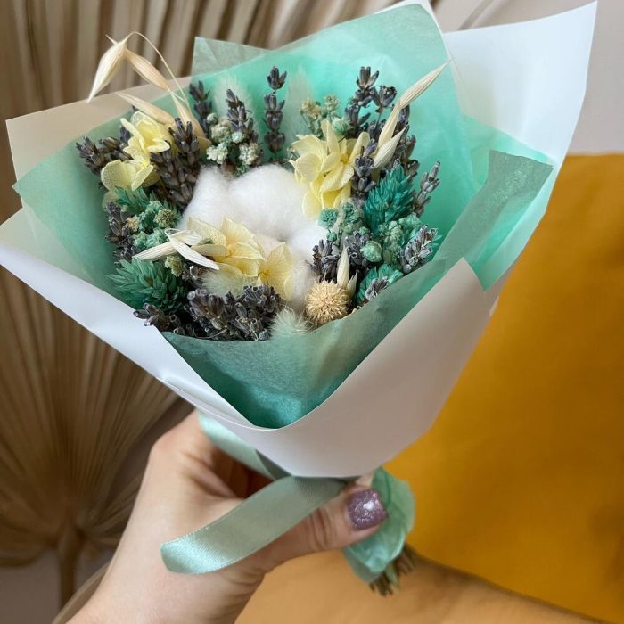 Букет – комплимент из сухоцветов с лавандой и желтым цветом