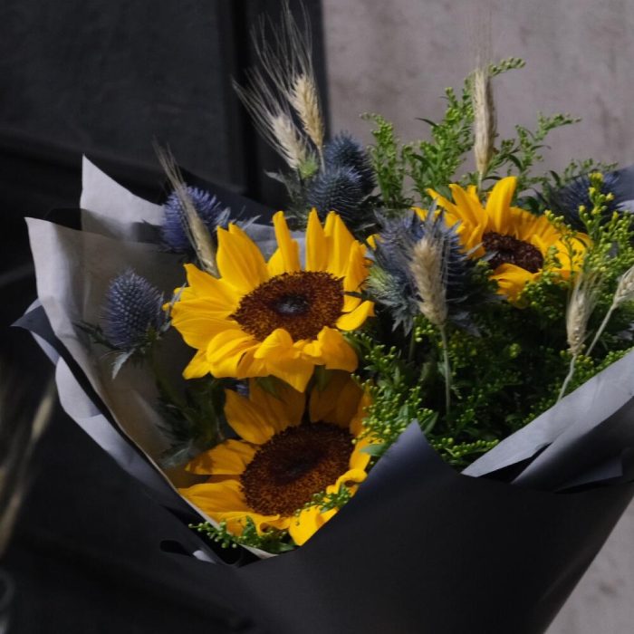 Букет с подсолнухами и эрингиумом