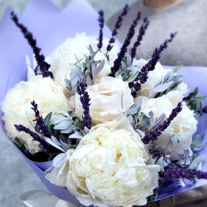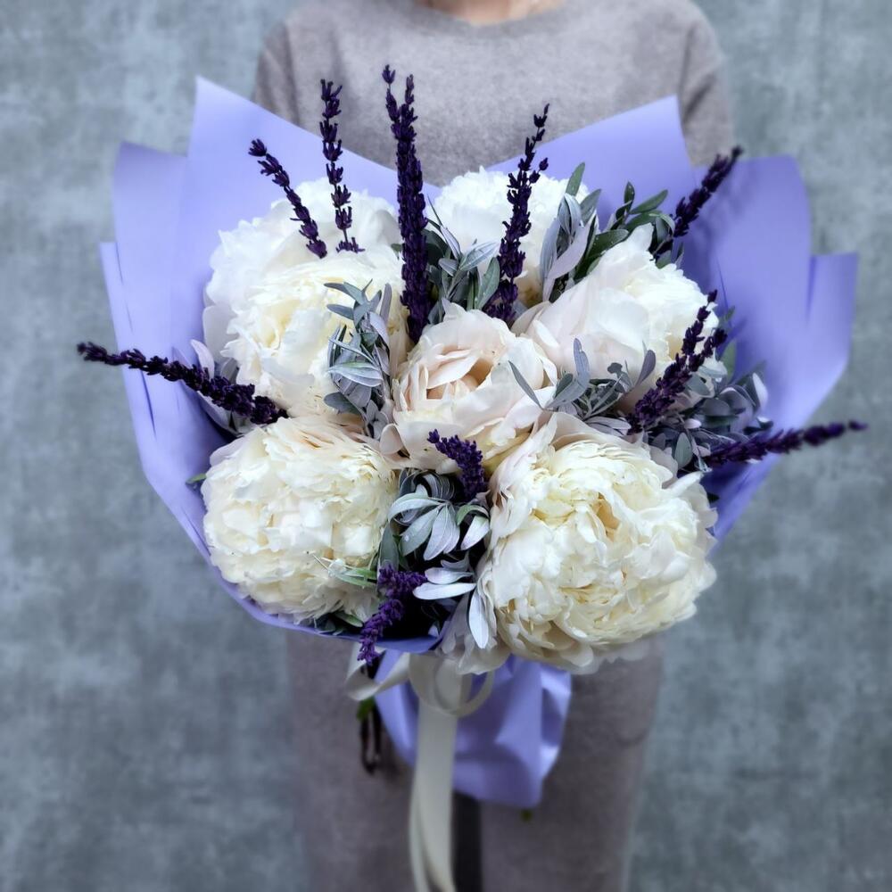 Букет из пион розы и гипсофилы (сб 014)