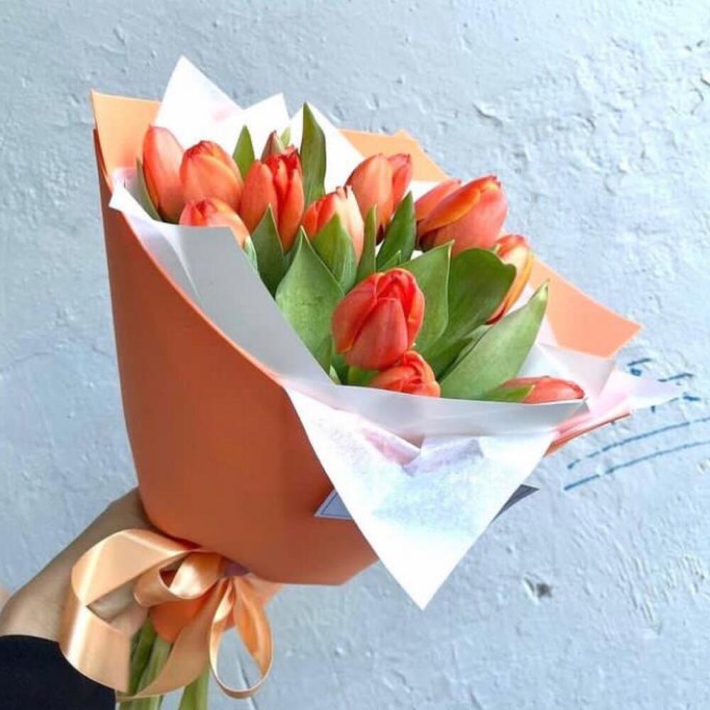 Тюльпан – 11 шт.Лента атласная – 1 шт.Упаковка дизайнерская – 2 шт.