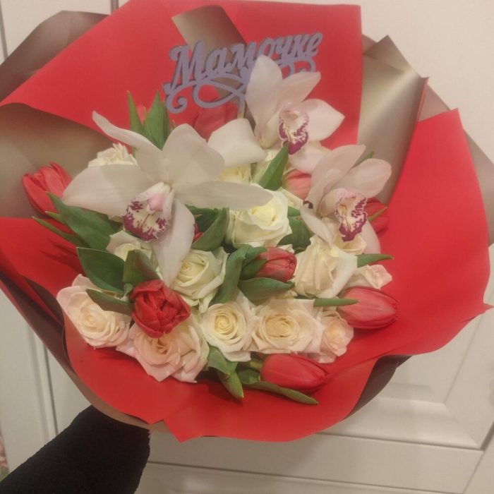 розы – 20 шт.тюльпаны – 10 шт.орхидея – 3 шт.Дизайнерская упаковка – 1 шт.