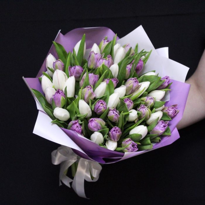 mono bouquet 49 из 51 тюльпана микс сортов double price и Royal Virgin