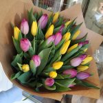 37 тюльпаны МИКС в модной крафт бумаге смотрятся очень красиво и достойно. Нет человека, который не знает, что такое тюльпаны. Яркие и нежные, они появляются на наших рынках с приходом весны. Сейчас известно две с половиной тысячи видов этих цветов. Богатая палитра расцветок … Показать ещёих лепестков поражает разнообразием оттенков. Отвечая на вопрос о том, какого цвета бывают тюльпаны, можно сказать, что любого. От белого до черного и от голубого до темно-фиолетового. Выбирая букет, большинство из нас руководствуется внешним видом бутонов и мало внимания обращает на цвет лепестков. А ведь каждый таит в себе определенное значение. Значительно проще выбрать букет тюльпанов разноцветных, он красивый, пестрый и ни к чему не обязывающий.