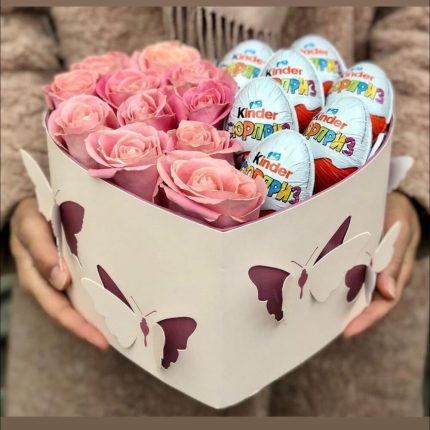 Цветы в коробке с Рафаэлло