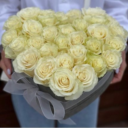 21 белая роза в коробке